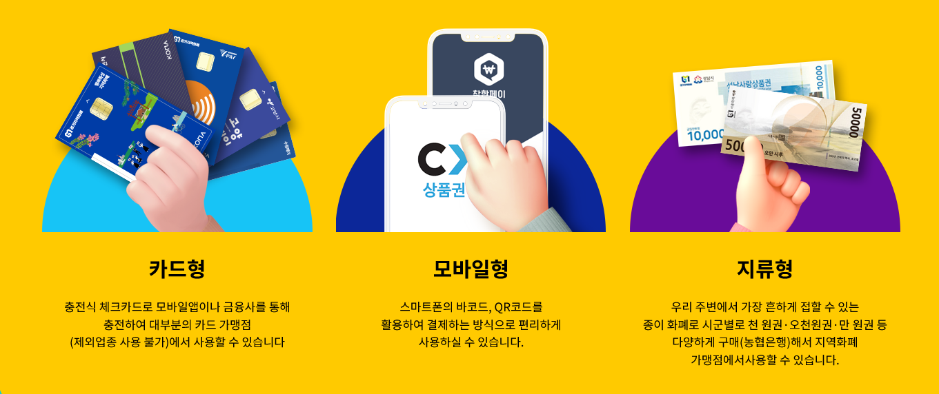 -지역별 전통시장 및 소상공인의 실질적 매출 증대, 지역경제 선순환 도모를 위해 경기도 31개 시 ·군에서 발행하고 지역 내에서 사용하는 대안화폐입니다.