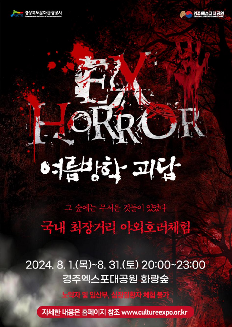 다가오는 8월 경주엑스포대공원에서는 국내 최장거리 야외호러체험인 'EX HORROR 여름방학 괴담'이 오픈됩니다.