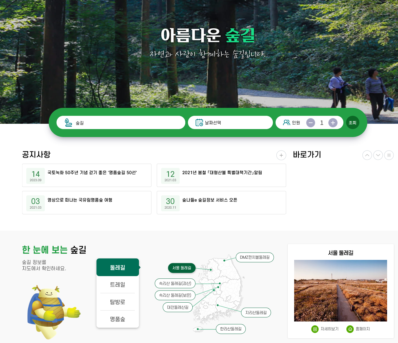 숲길 홈페이지에서는 대한민국의 아름다운 숲길 여행에 대한 다양한 정보들을 볼 수 있습니다.