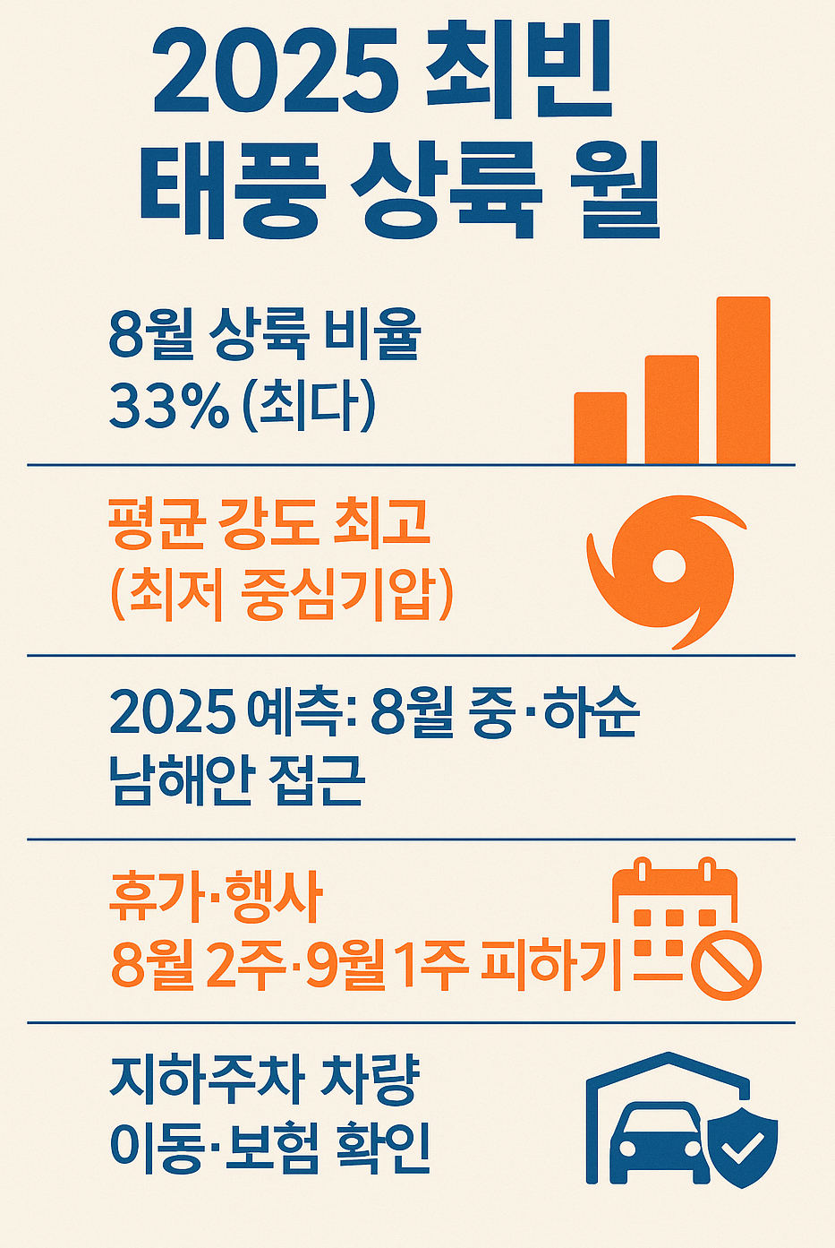 9월 (27 %)·7월(16 %)이 뒤를 잇지만 평균 중심기압은 8월이 가장 낮아 위협이 큽니다.