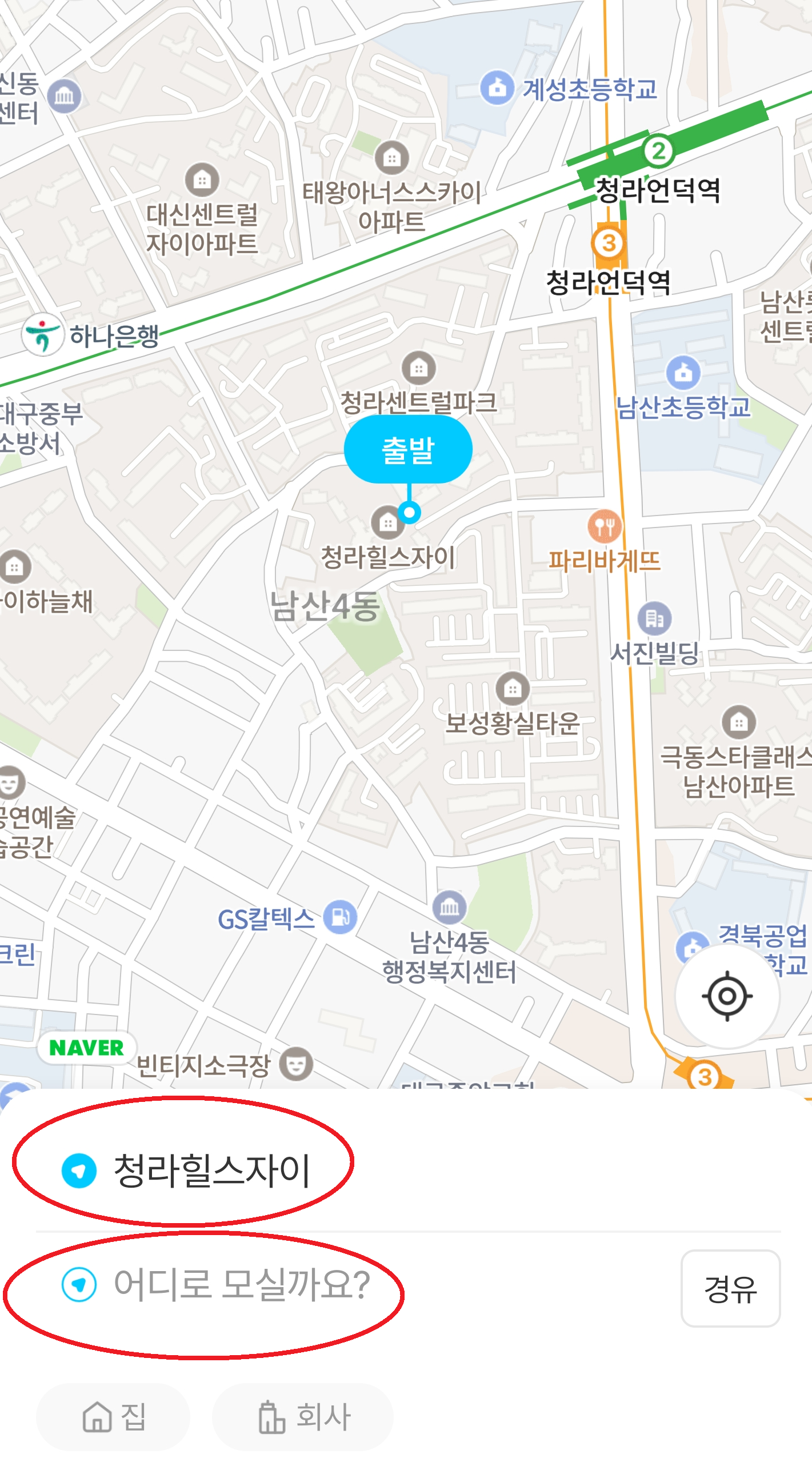 3. 출발지와 도착지를 선택한 후