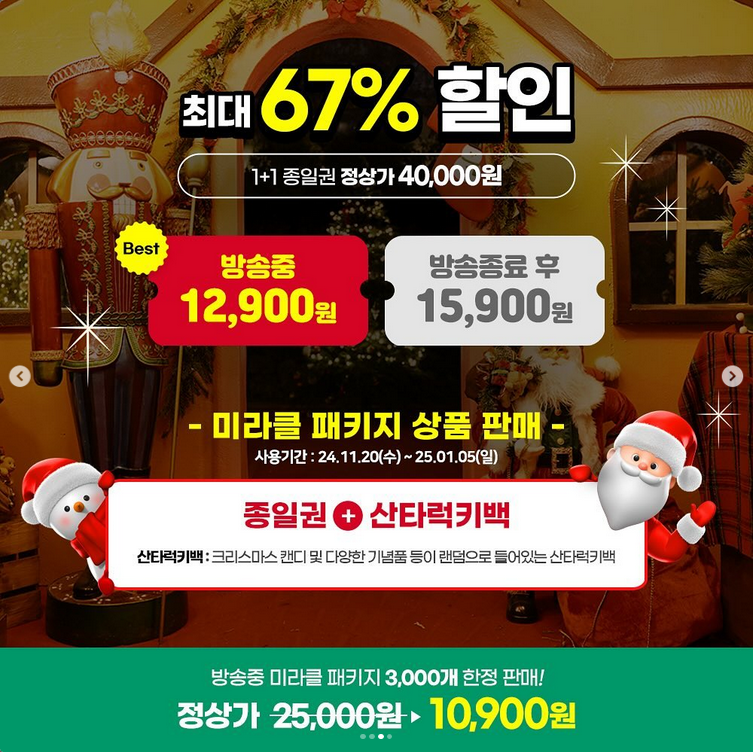 여기서 잠깐 20일(수) 11시에 네이버쇼핑 라이브에서 미라클 크리스마스 입장권