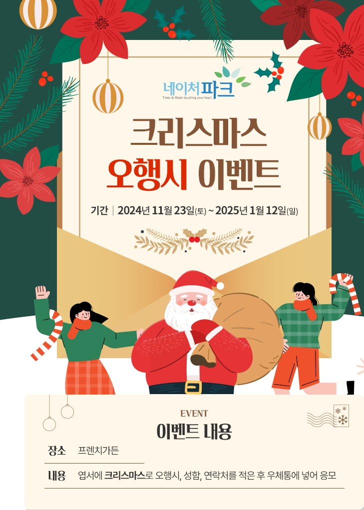 이번에 포스팅에서는 네이처파크에서 23일 열리는 미라클 크리스마스에 대해 소개해볼게요^^