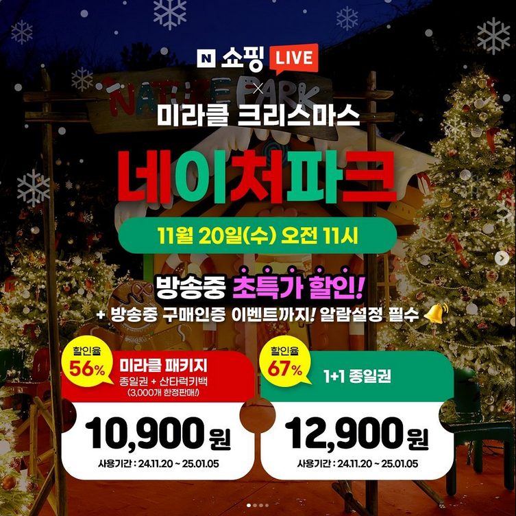 여기서 잠깐 20일(수) 11시에 네이버쇼핑 라이브에서 미라클 크리스마스 입장권