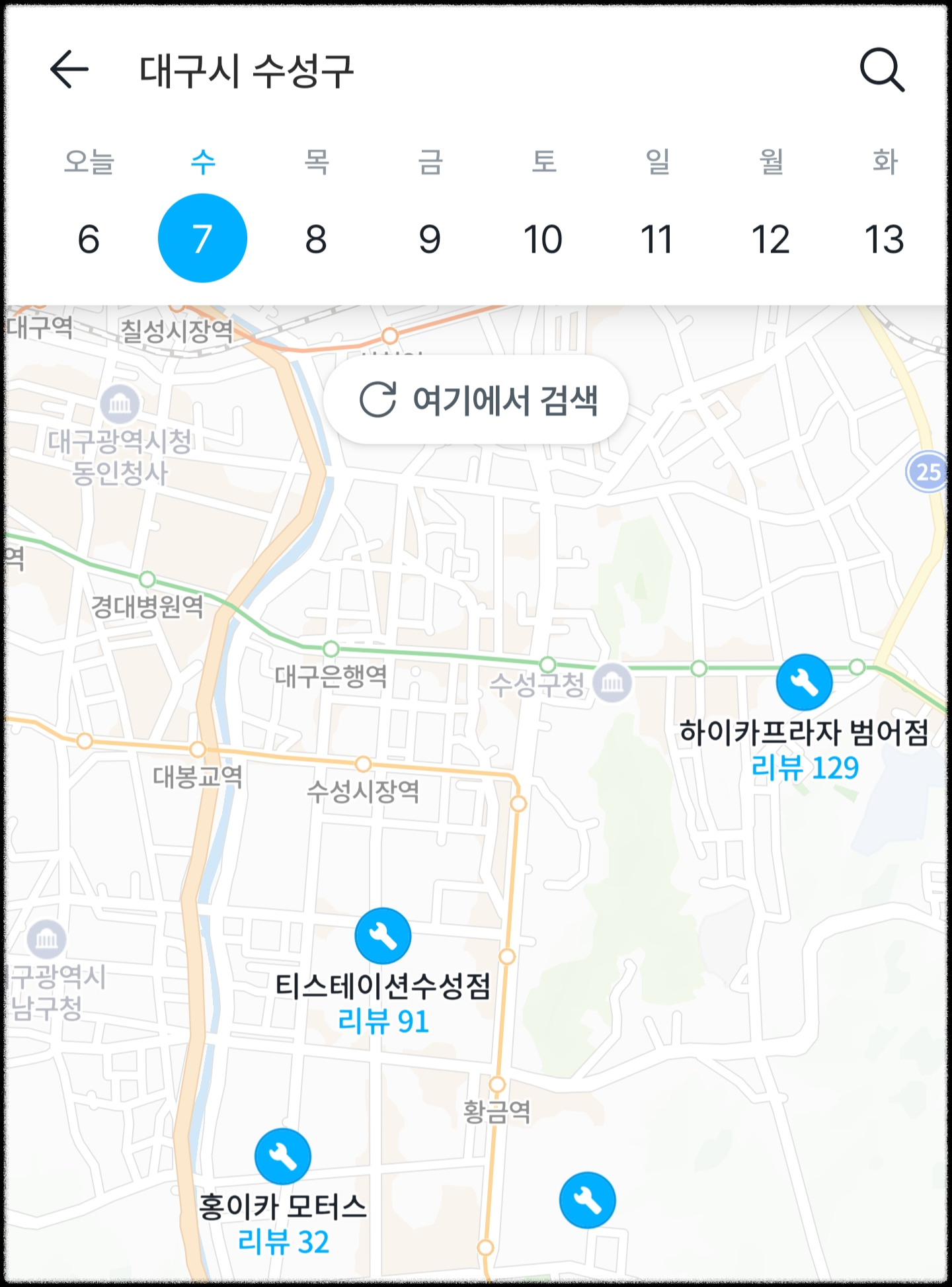 우선 정비받으실 정비소를 선택한 후, 날짜, 시간을 정합니다.