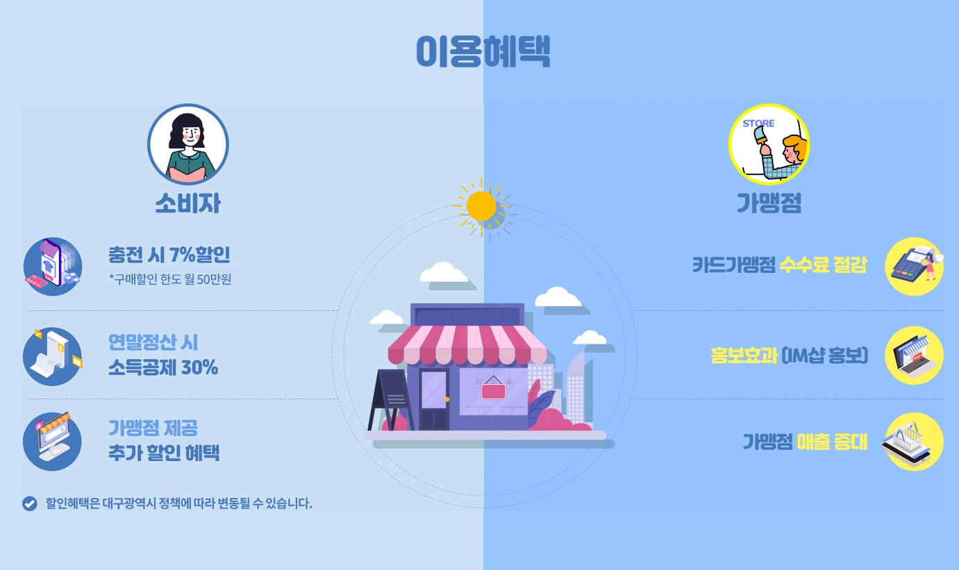 -대구로페이 3000,000원 충전 시 본인게좌에서는 7% 할인된 279,000원이 인출됨.