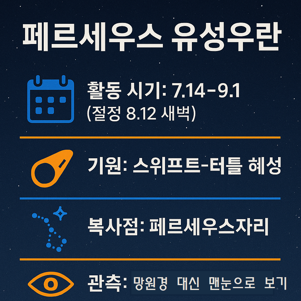 특히 2025년 8월 12일 자정 이후가 극대기로 예측‑되니 시간당 최대 90여 개의 별똥별을 놓치지 마세요!