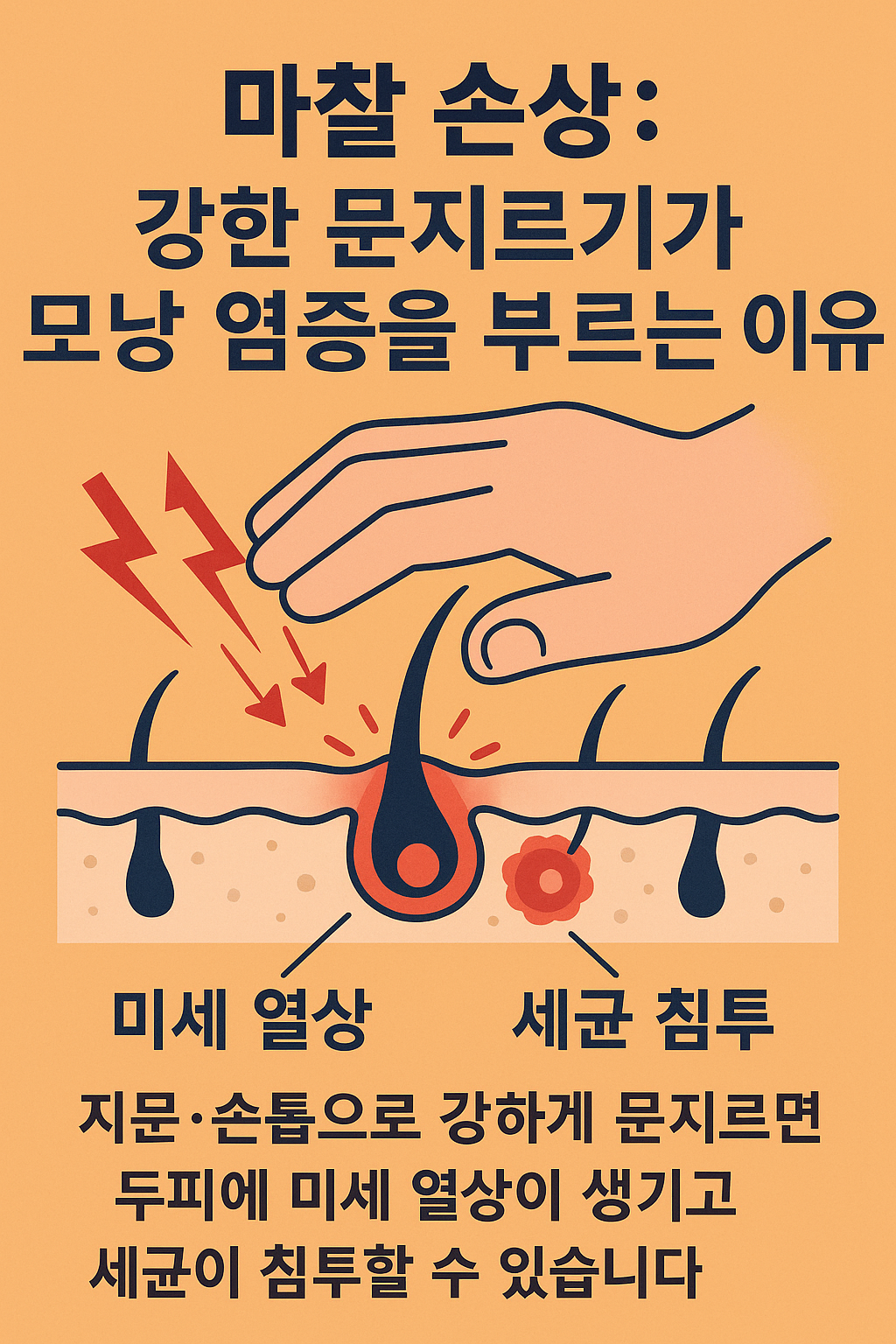▲강한 마찰이 모낭에 남기는 상처를 과학적으로 설명하고,