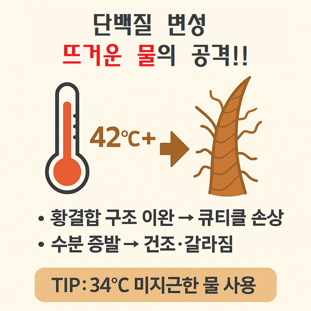 🔥 단백질 변성: 뜨거운 물이 모발을 공격하는 방식