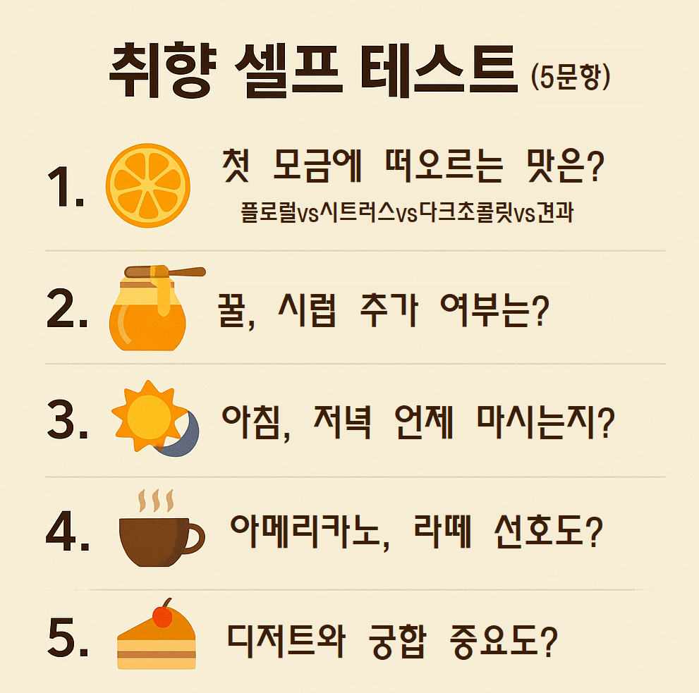 기억하면 언제 어디서나 “내 취향의 한 잔”을 완성할 수 있습니다.