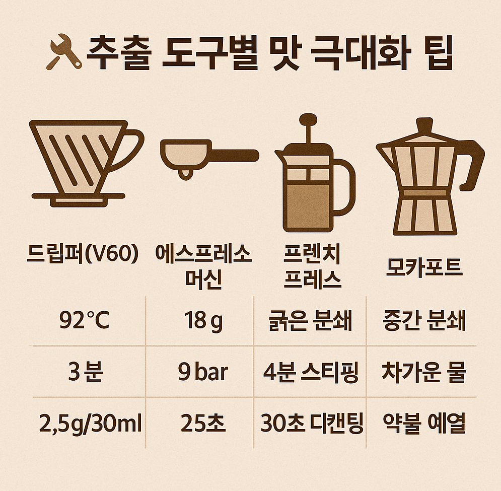 🛠️ 4. 추출 도구별 맛 극대화 팁