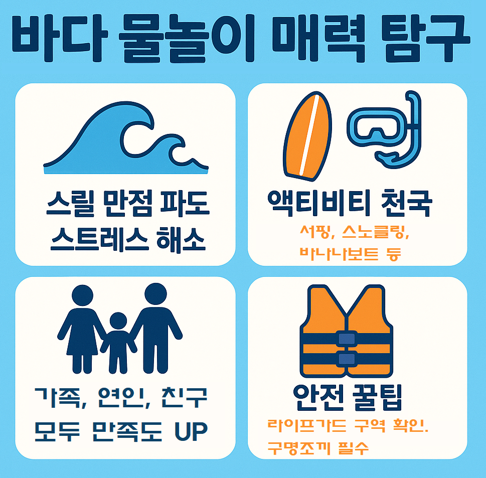 바다의 넓은 시야와 스릴 넘치는 파도는