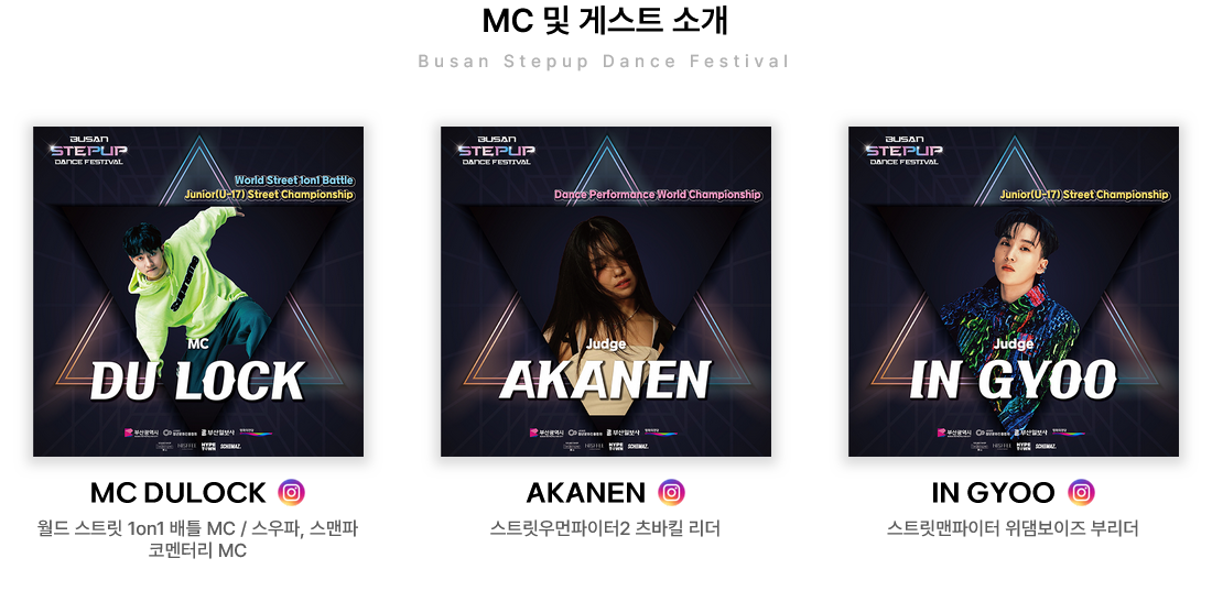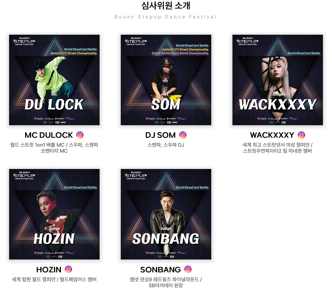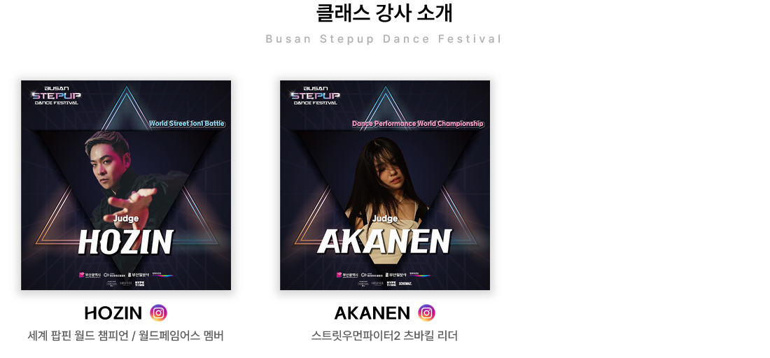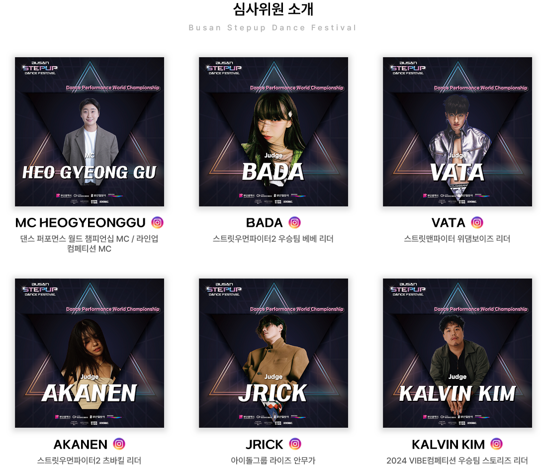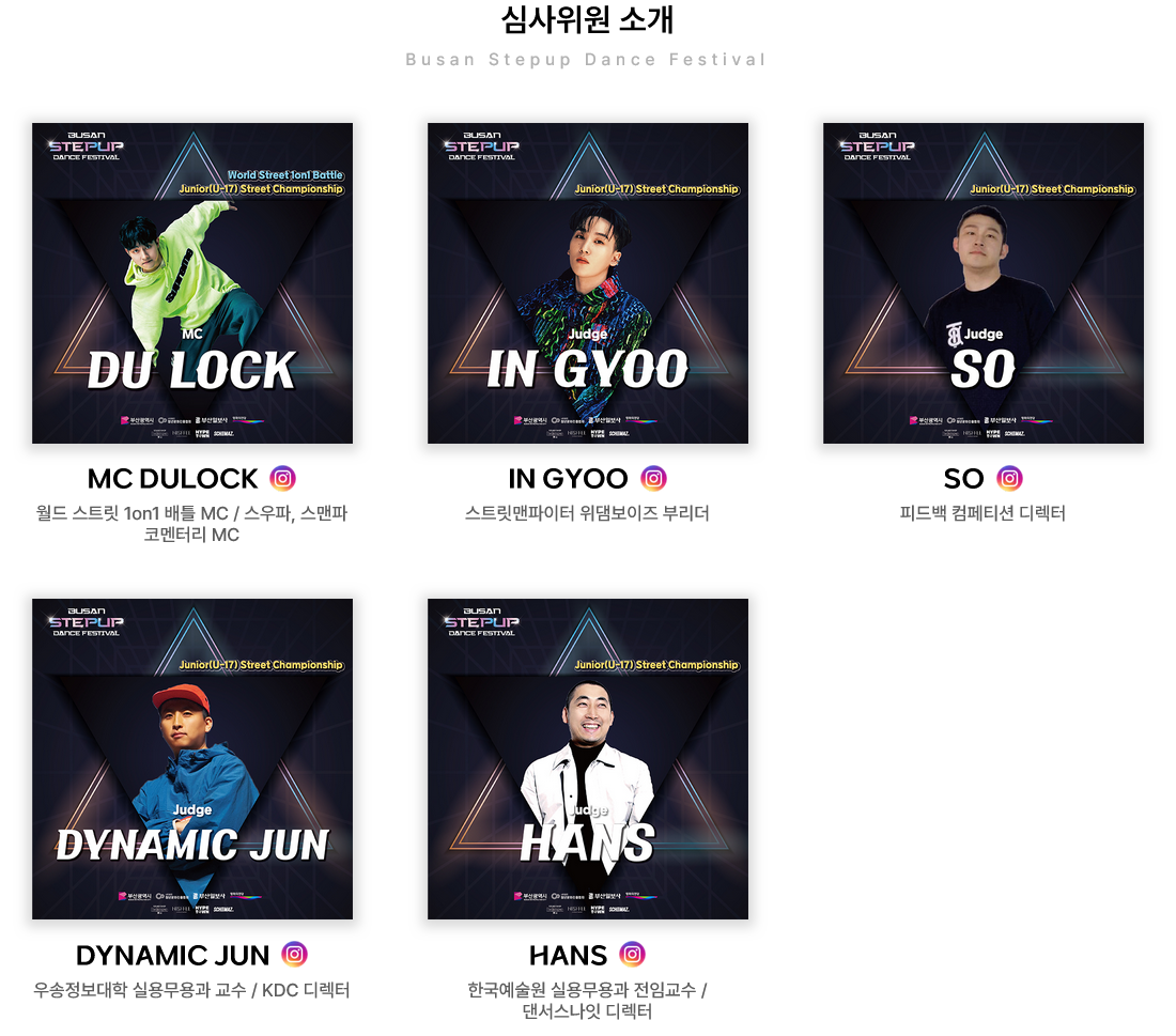 2. 부산 스텝업댄스페스티벌 행사 프로그램별 참가 심사위원 소개