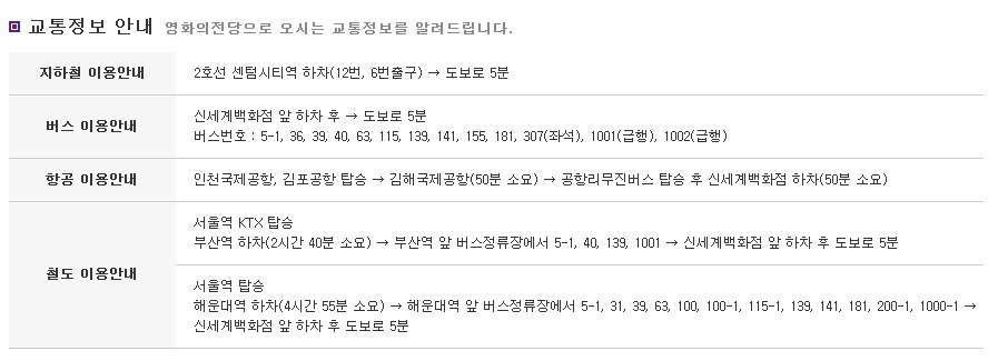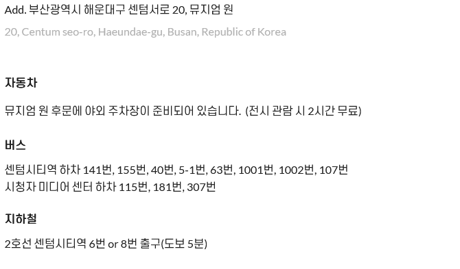 - 장소 : 부산 영화의 전당, KT&G 상상마당 부산 등
