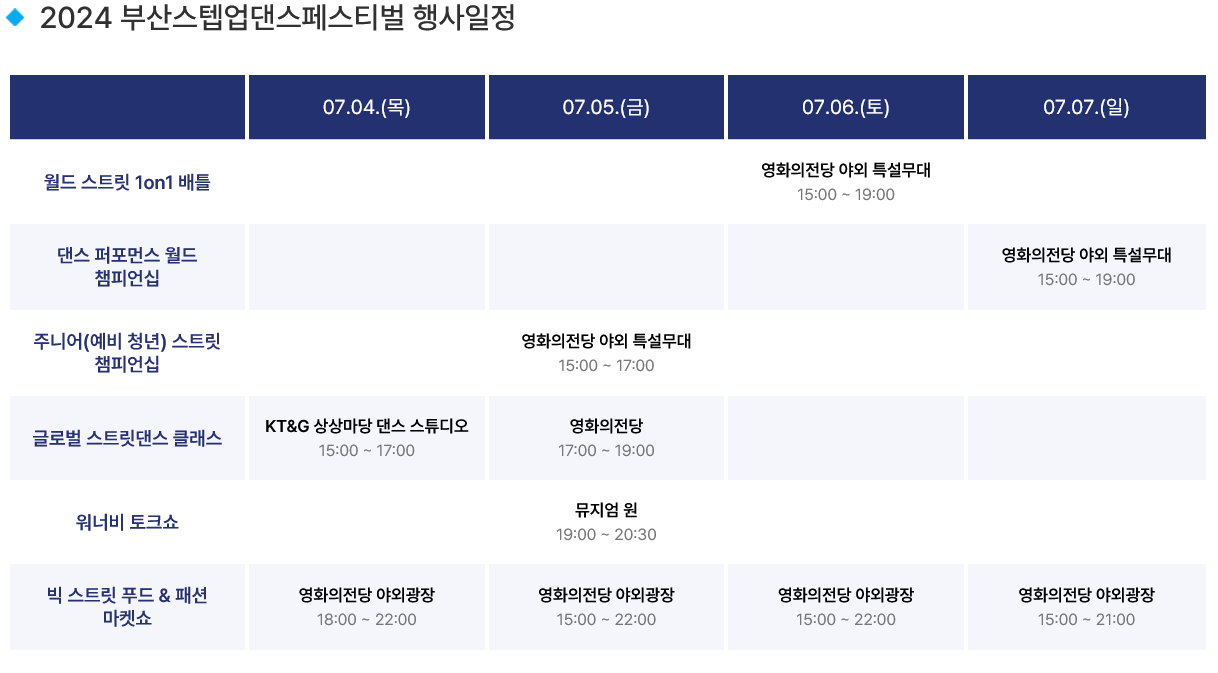 - 행사 일시 : 2024. 07. 04.(목) ~ 07. 07.(일)