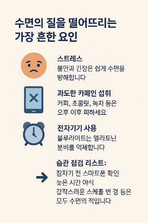 ✅ 1. 숙면을 방해하는 원인 점검