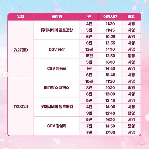 <서울 지역 무대인사 일정 및 장소>