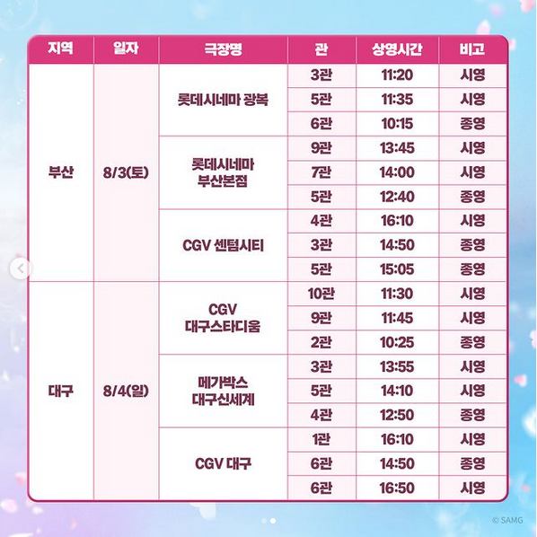 <부산, 대구 지역 무대인사 일정 및 장소>