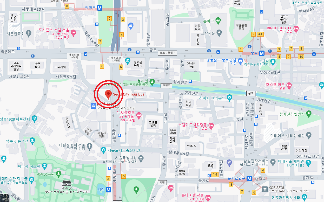 서울시티투어버스는 온라인 예약뿐만 아니라 현장발급도 가능합니다. 광화문티켓박스라는 곳에서 발급가능하니 아래 지도 보시고 참고하세요