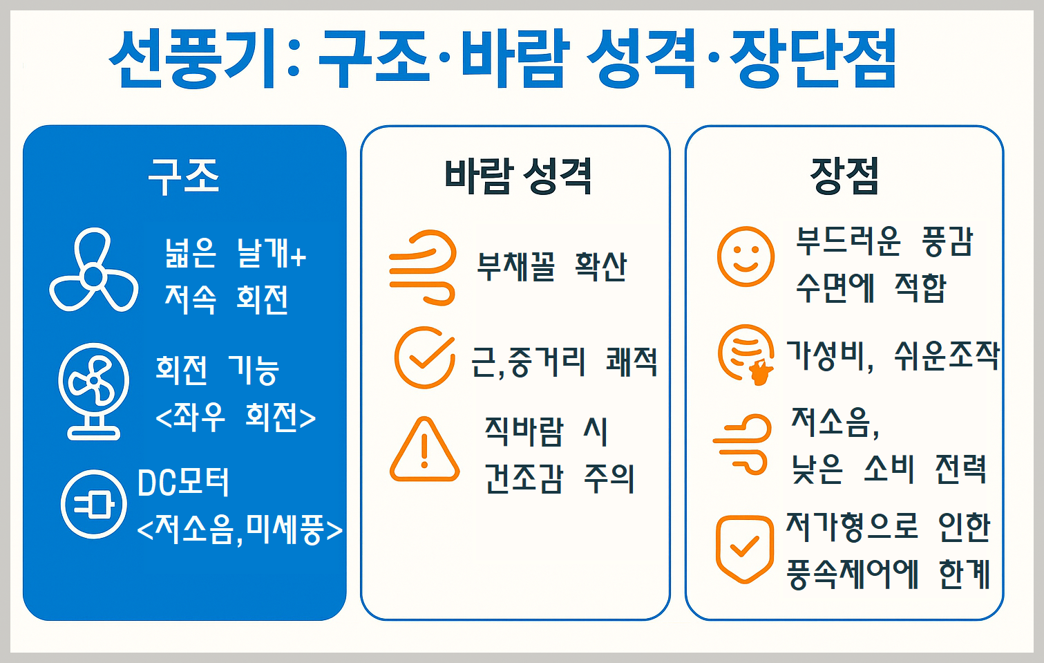 🔍 선풍기: 구조·바람 성격·장단점