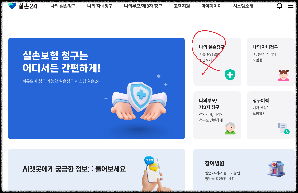 화면에서 보이시는 것처럼 본인 실손청구뿐만 아니라