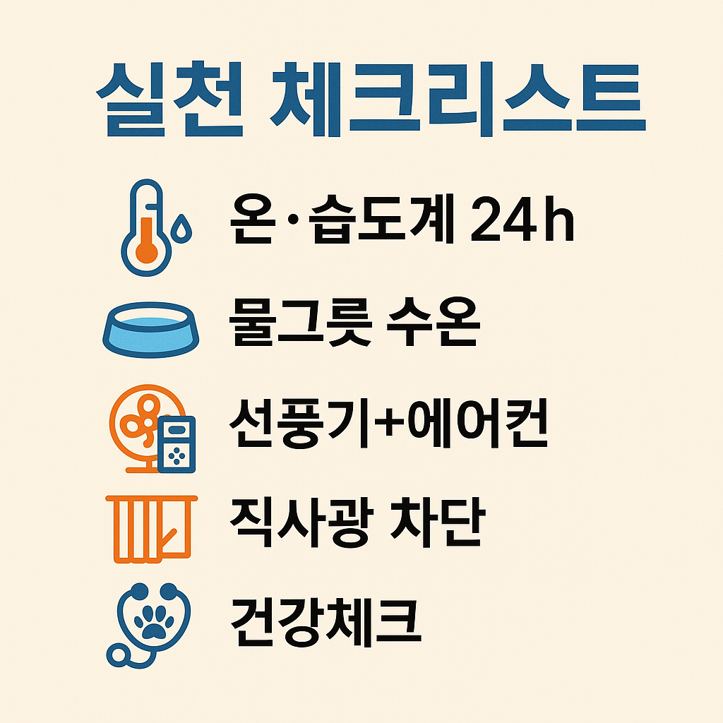 개·고양이의 최적 온도를 지키고 바람 방향·습도·응급 처치 요령을 숙지해보세요.
