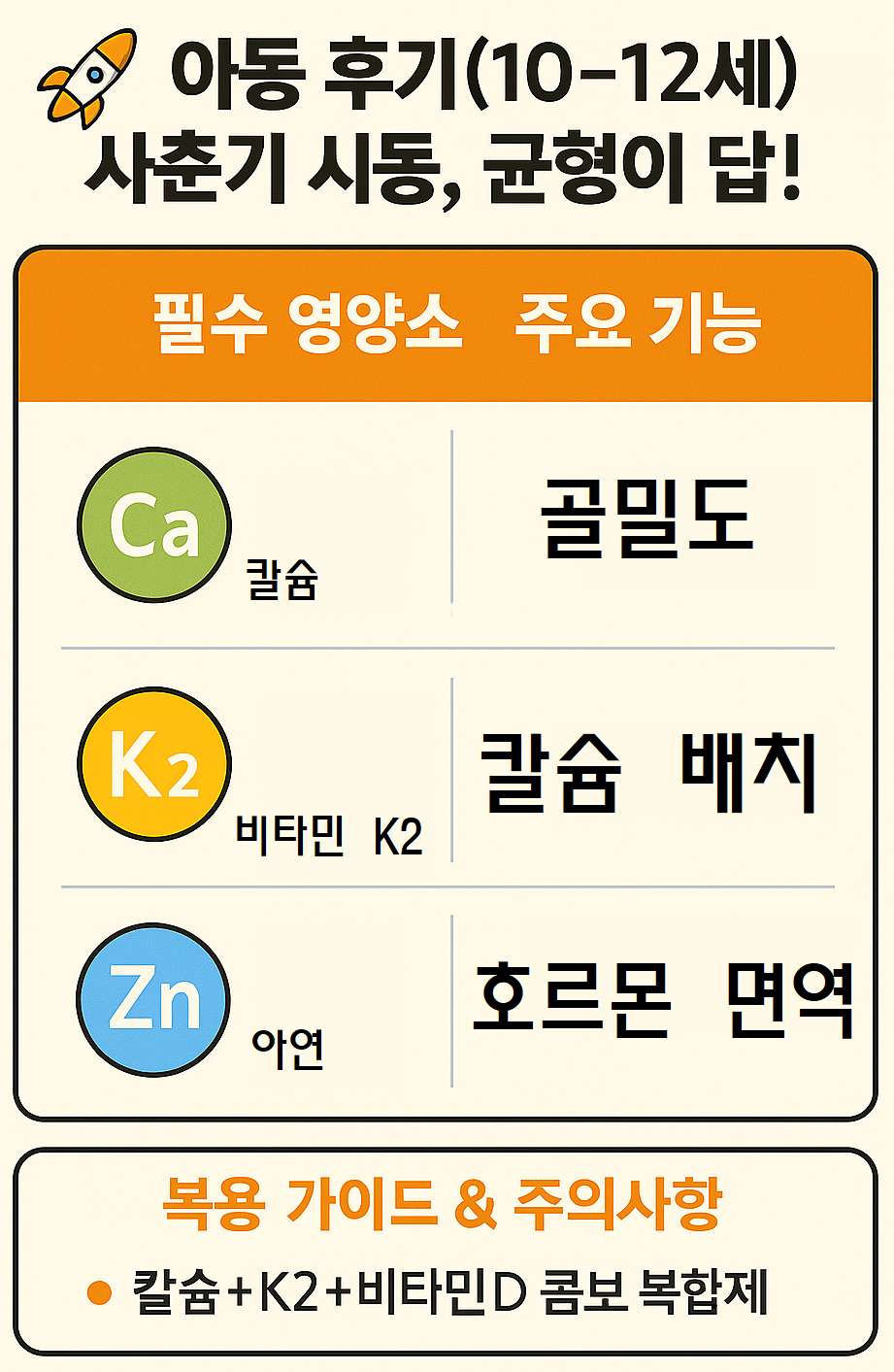 🚀 아동 후기(10~12세) — 사춘기 시동, 균형이 답!