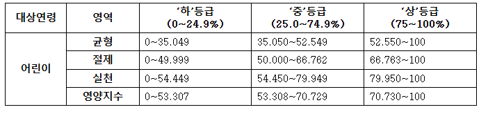 <학령기(만 6세~11세어린이) 영양지수 검사>