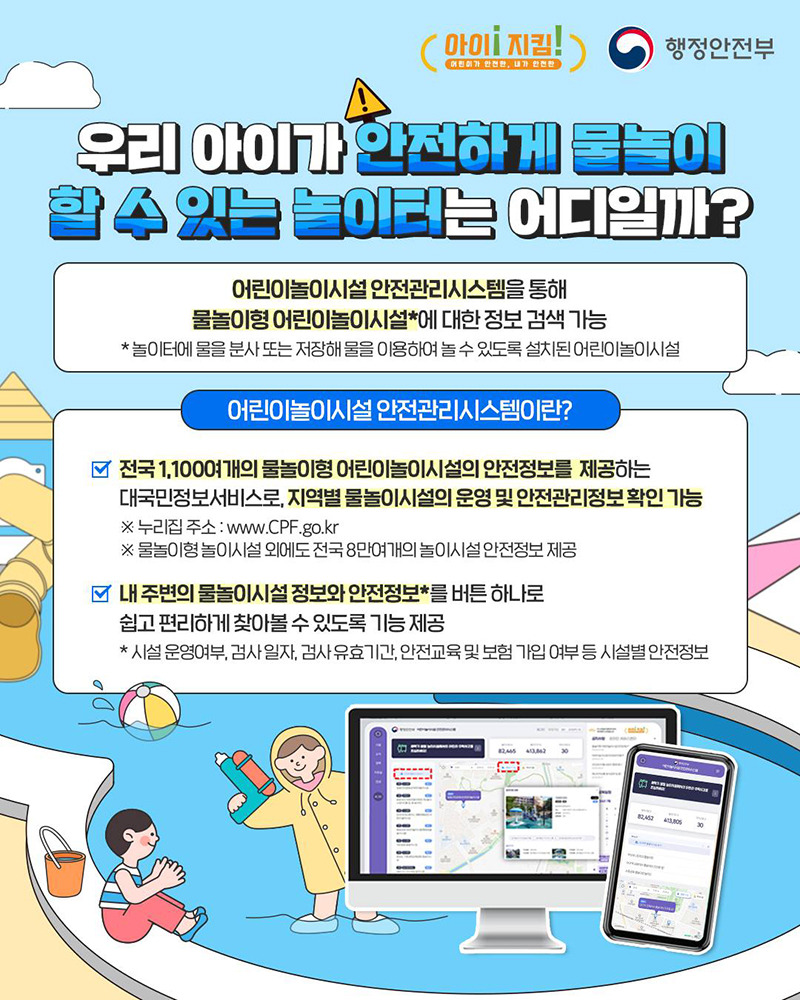 - 전국 1,100여 개의 물놀이형 어린이놀이시설의 안전정보제공