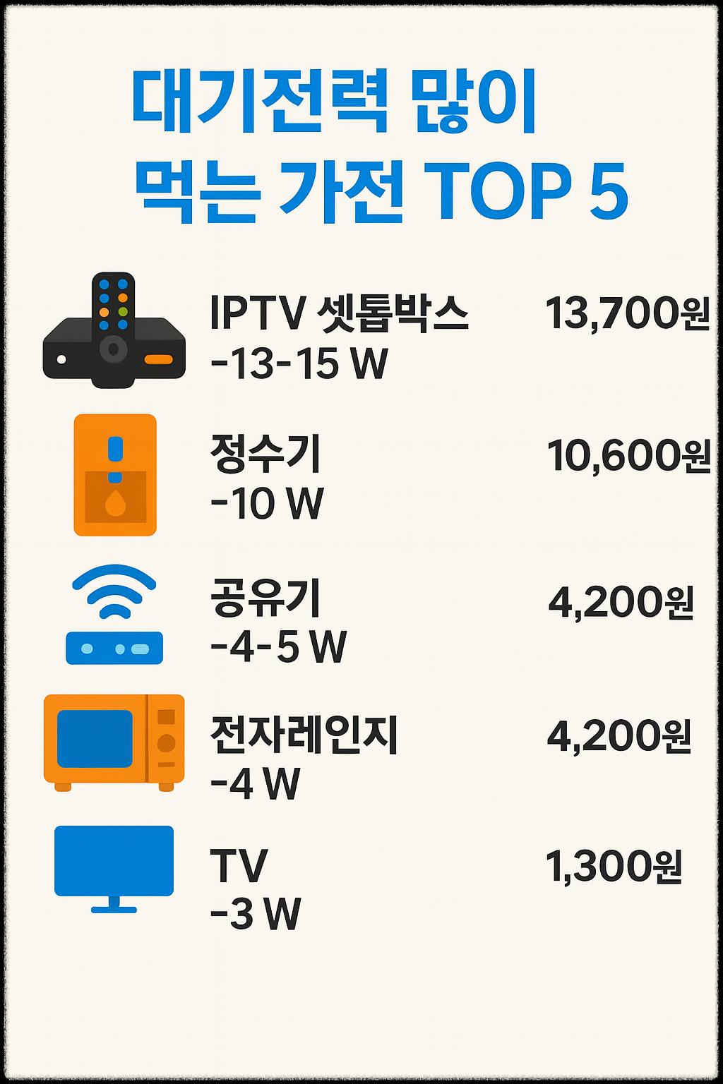 📊 주요 가전 대기전력 비교표