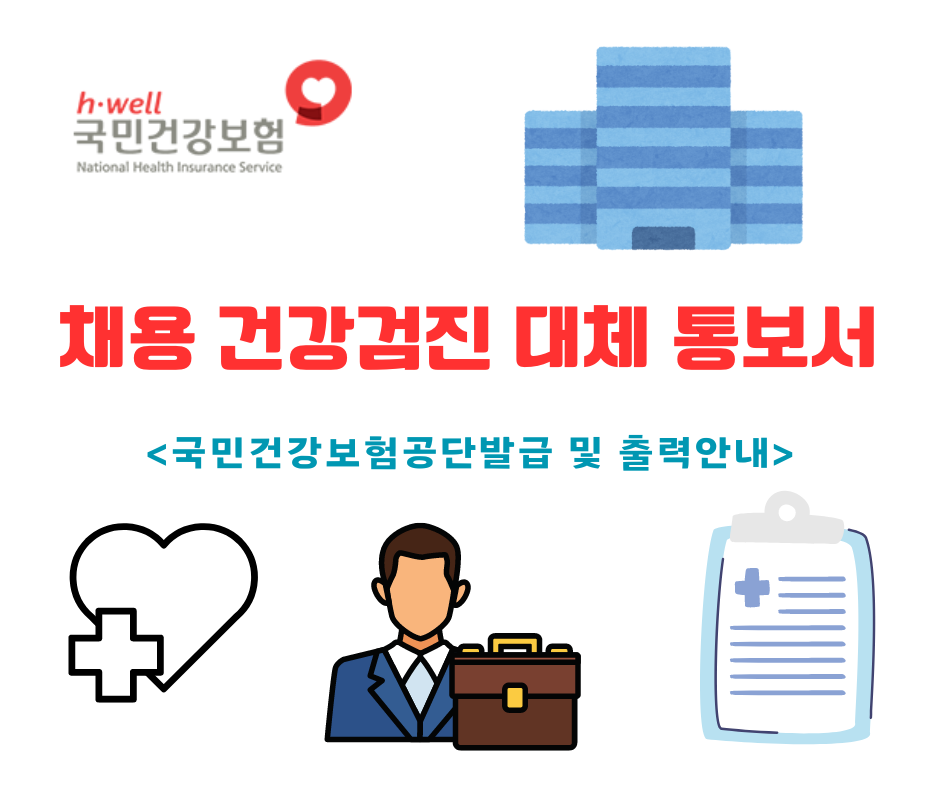 이직 및 취업 시 대부분의 회사 혹은 공기업에서는 직원 채용 시 개개인에게 건강검진 결과를 제출할 것을 요구합니다. 그렇게 되면 동네 병 ·의원 혹은 건강검진센터 등을 방문, 4-5만 원의 개인 비용을 부담하여 건강검진을 받고 서류를 제출하여야 합니다. 그리고 검진 결과도 즉시 받을 수 있는 게 아니라서 취업한 회사에서 서류를 요청할 경우 마음이 급급해지기 마련입니다. 이럴 때 국민건강보험공단에서 제공하는 '채용 건강검진 대체 통보서'를 이용하시면 바로 서류 발급이 가능합니다.