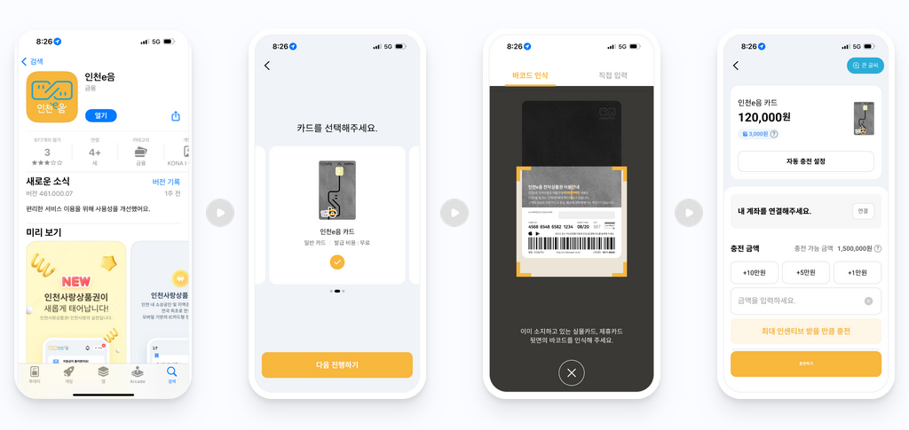 - 플레이스토어 및 앱스토어에서 '인천e음'을 검색 후 어플다운로드