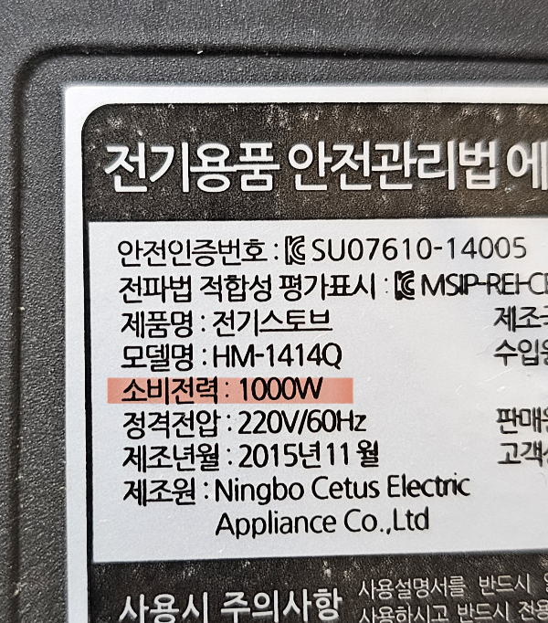 소비전력 1000W(와트)라고 적힌 거 보이시죠?
