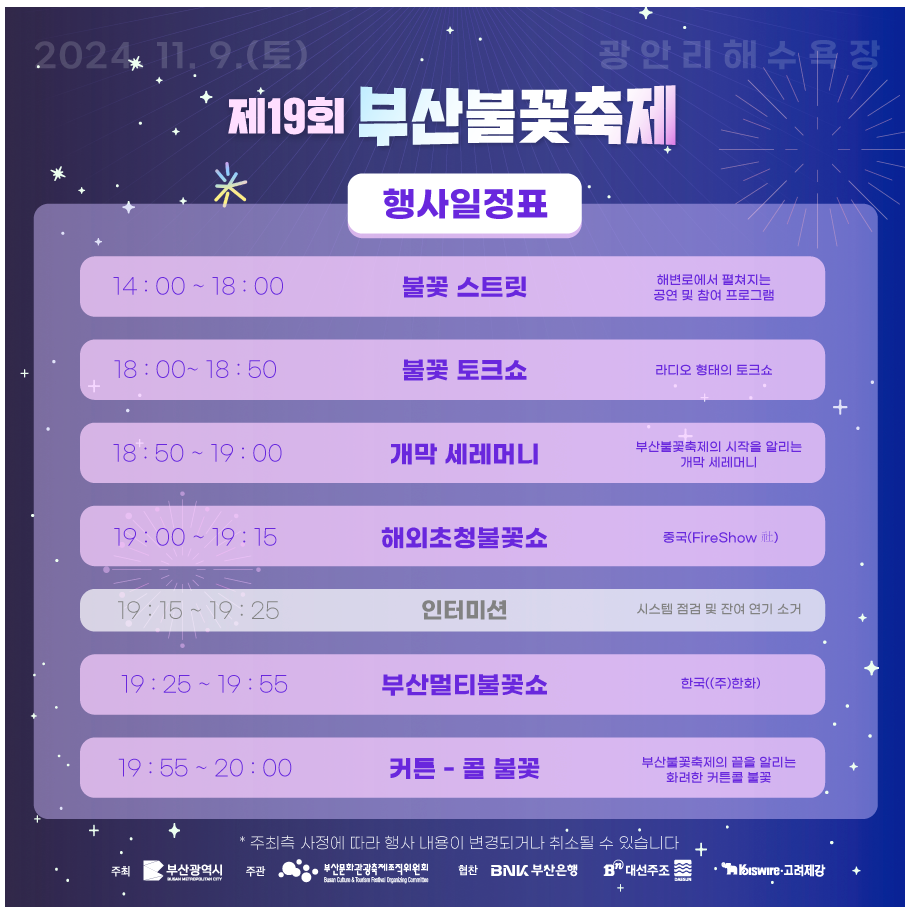 제19회 부산 불꽃축제에 대해서 소개해볼게요