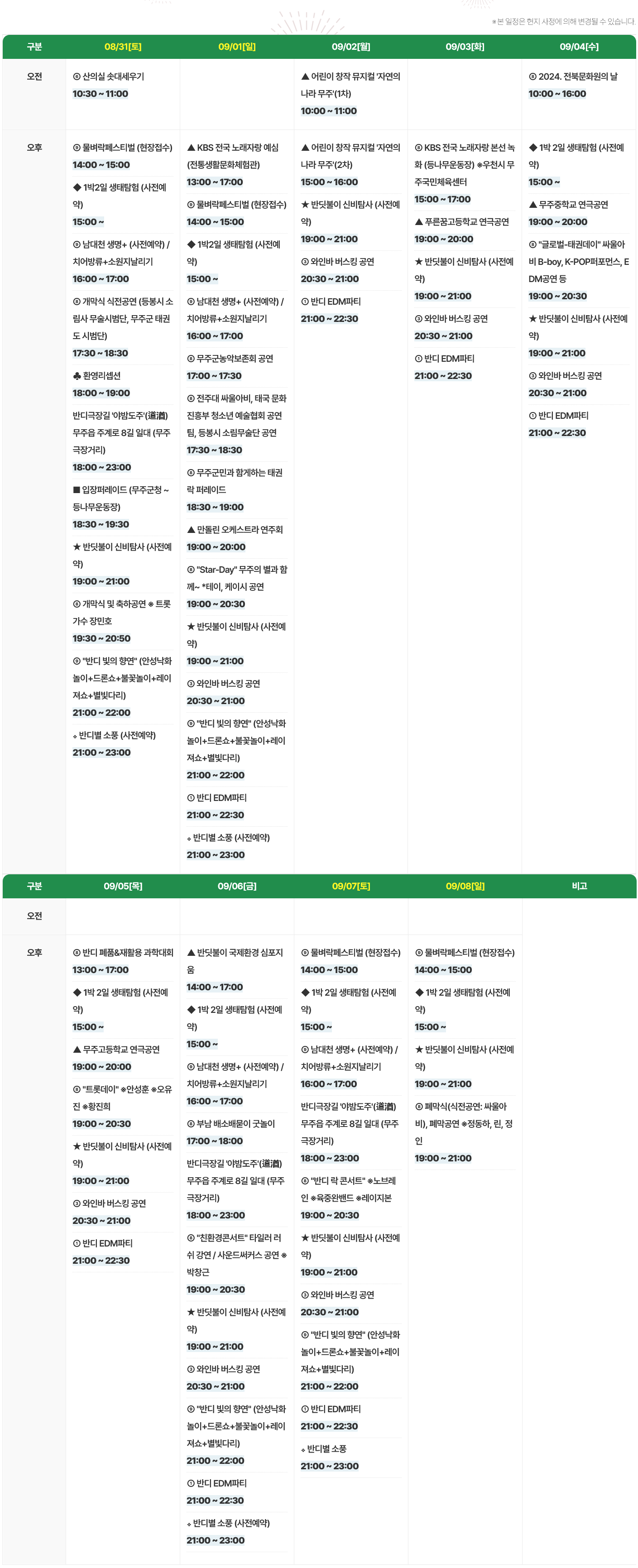 ● 축제 프로그램 일정표
