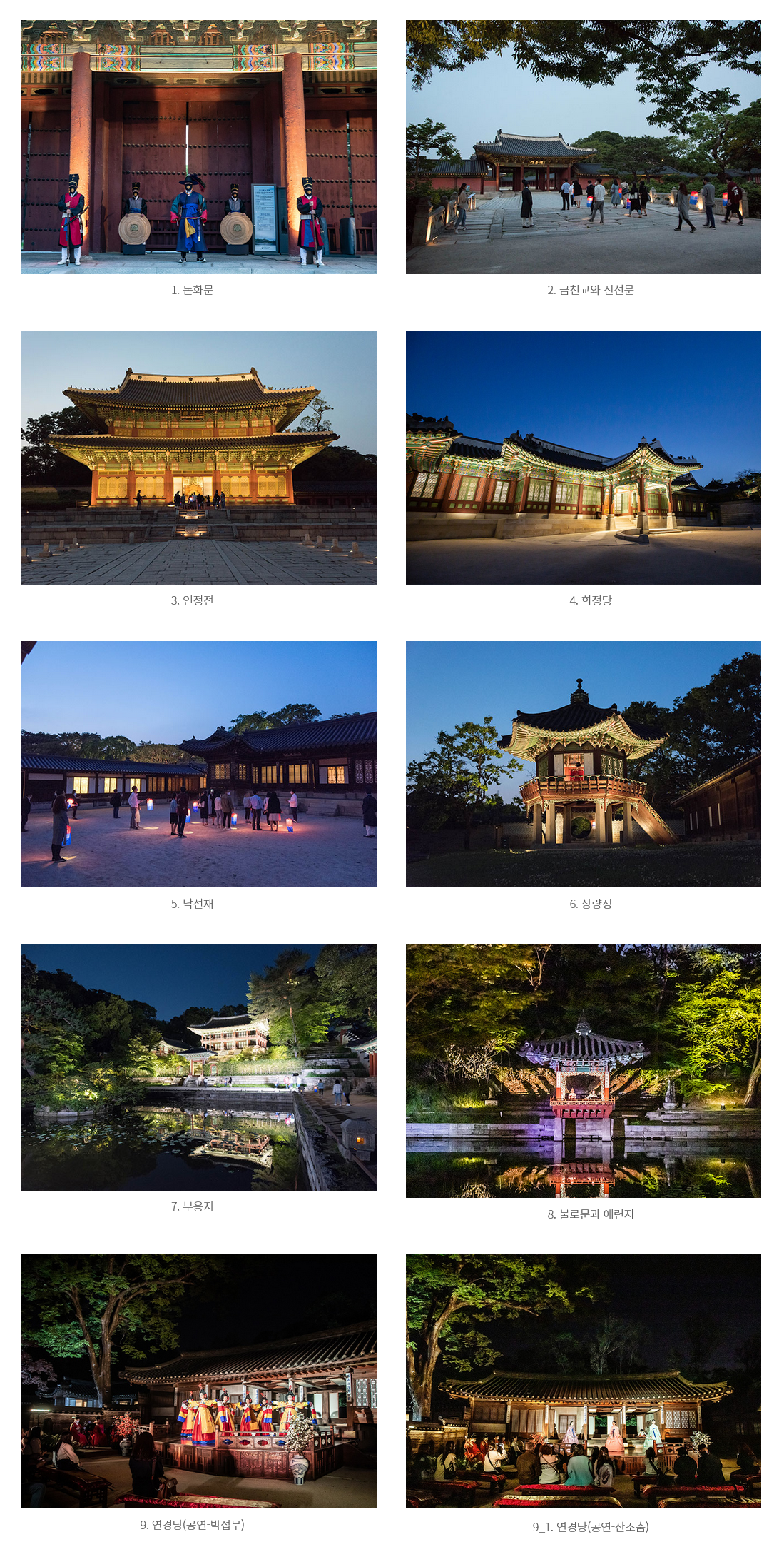 2. 달빛 기행 야간 관람 코스(약 110분 소요)