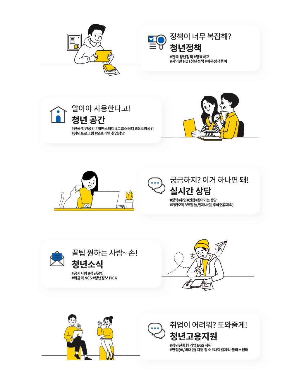 청년 정책에 대한 쳬계적인 정보망 구축과 전문성 있는 정책 안내 및 상담을 지원하는 '온통청년'에서 많은 정보와 지원을 통해 대한민국의 미래를 짊어질 청년들이 더 건설적인 방향으로 나갔으면 하는 바람입니다.