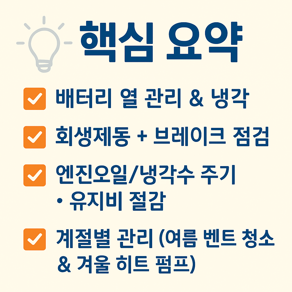 고전압 배터리의 열 관리부터 회생제동 시스템, 계절별 쿨링 벤트 청소까지!