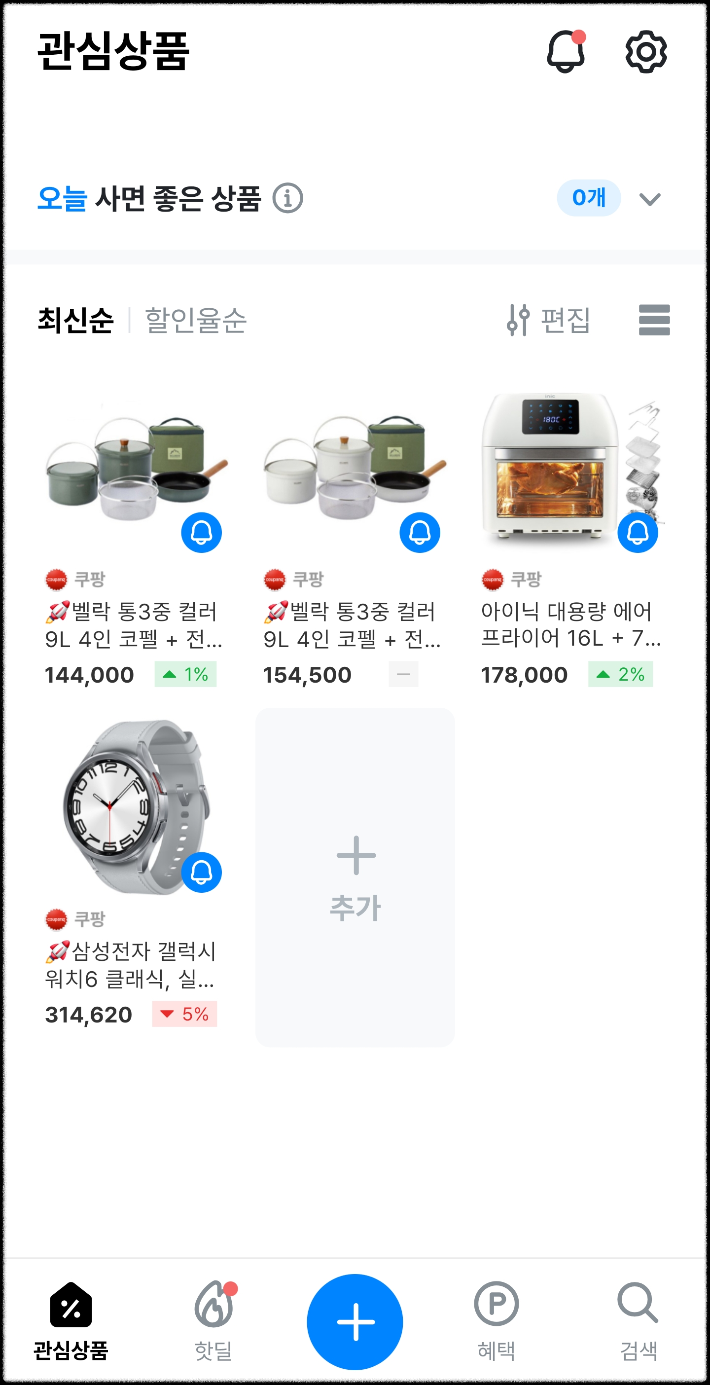 관심 상품 최저가 알리미! 실시간으로 바뀌는 상품 가격, 역대 최저가를 자동으로 비교해보세요. 상품 가격이 낮아지거나 핫딜이 있으면 알려드려요.