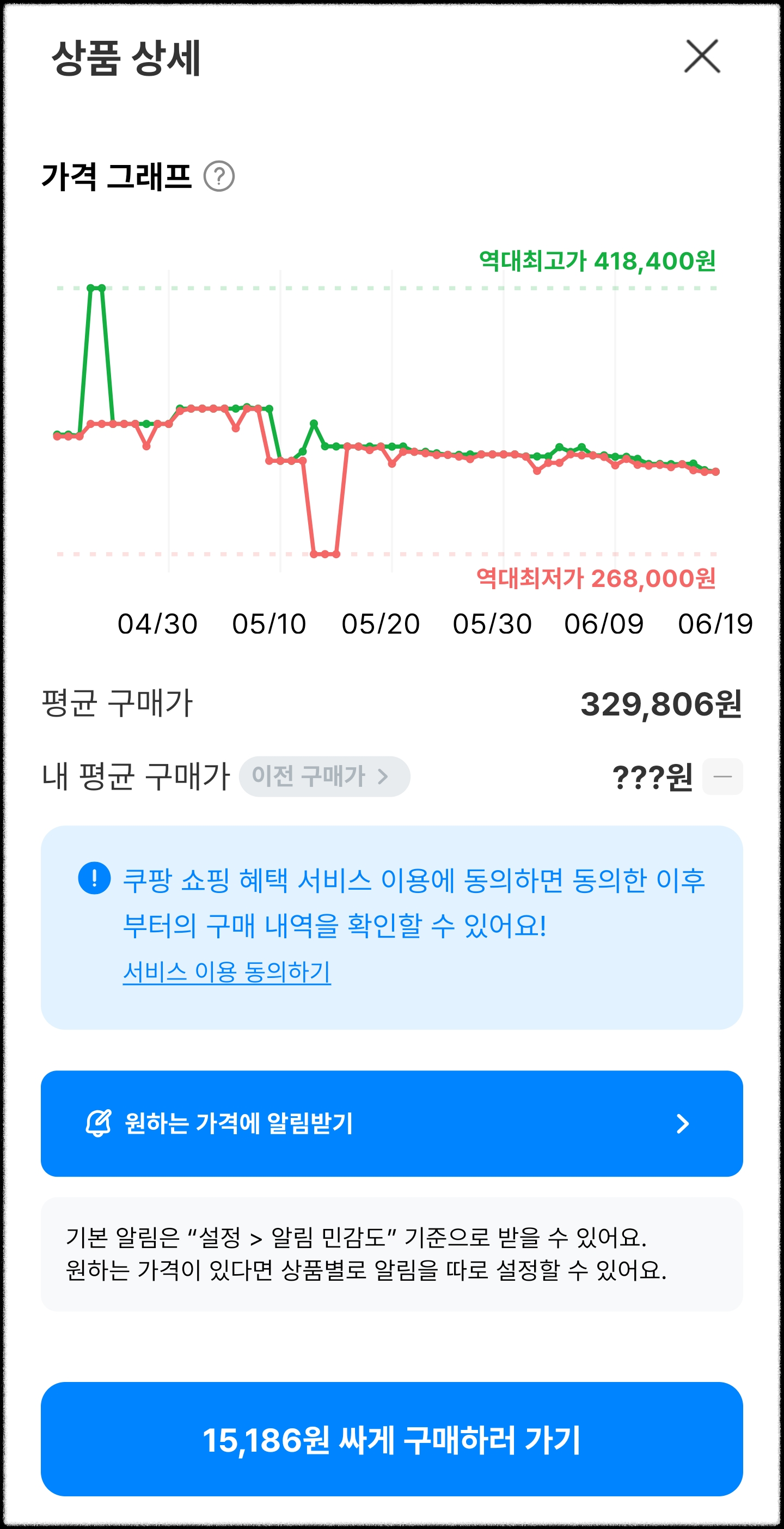 가격 그래프를 통한 제품의 역대 최저값, 최대값 확인 가능!!