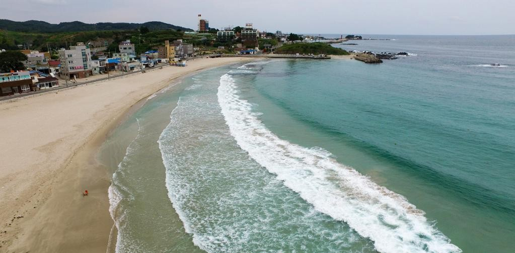 백사장 길이 1,750m, 너비 40~70m, 면적 3만 7207㎡로, 포항의 대표적인 해수욕장으로 알려져 있습니다. 1975년 개장 다시 포항북부해수욕장이라는 명칭을 사용하다가 2013년 6월부터 현재의 명칭으로 변경하였다. 포스코와 영일만이 건너다 보이며, 백사장의 모래가 곱다 보니 가족 단위 피서지로 적합합니다. 샤워장, 탈의장, 무료 야영장, 무료 주차장 등의 편의시설이 갖추어져 있습니다.