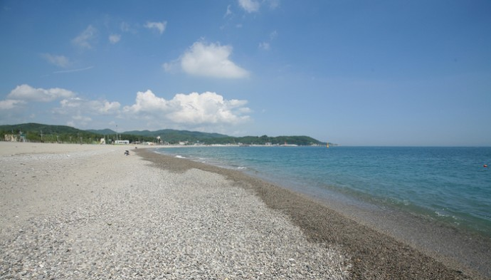 넓은 백사장의 잔잔한 모래와 동해의 청정해역, 여유 있는 주변 공간과 인근의 갖은 편의시설이 있고 동해의 바닷물을 이용하여 온천을 즐길 수 있는 해수탕이 있어 새로운 체험을 할 수 있고, 해수탕 옆은 주차 공간과 송림이 개방되어 있습니다. 500m 길이 90m 폭의 백사장이 있고, 모터보트, 바나나보트 등 수상 레저를 즐길 수 있습니다.