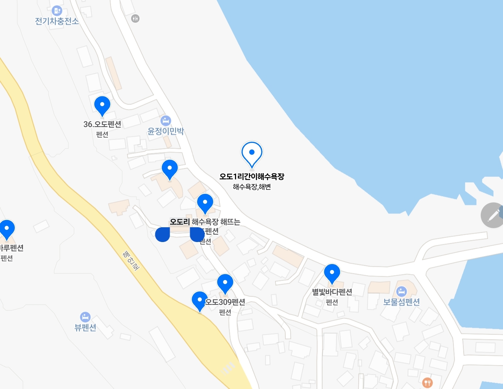 포항 오도1리 간이해수욕장 위치