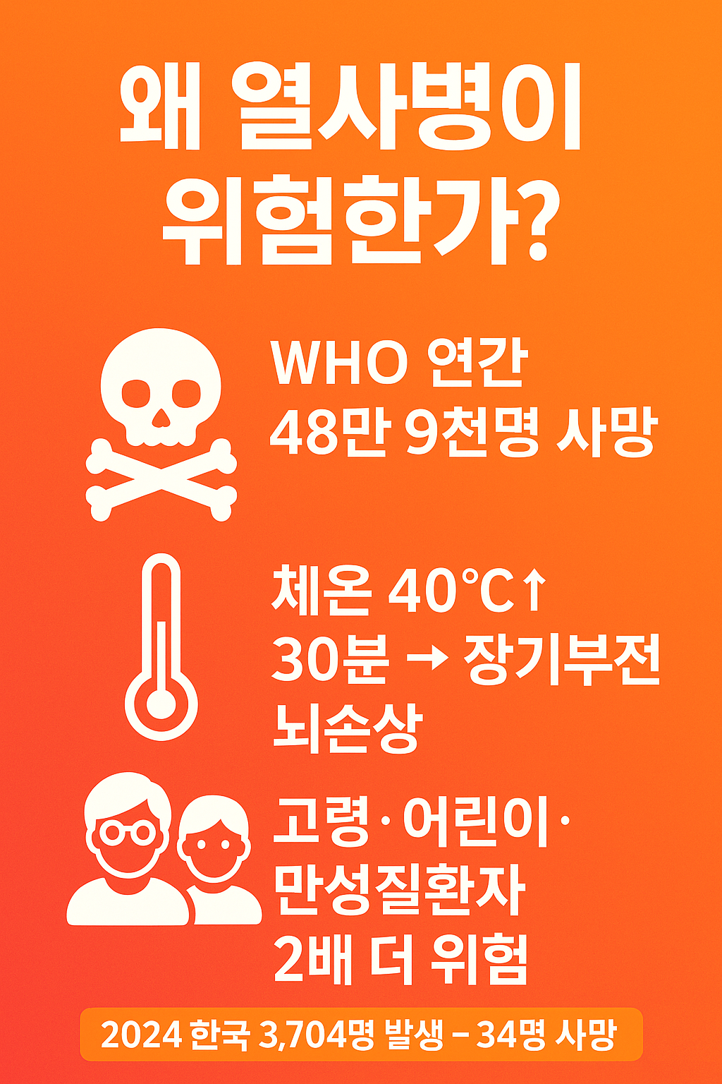 높은 기온은 체내 단백질 변성을 일으켜 다발성 장기부전·중추신경 손상을 유발합니다.