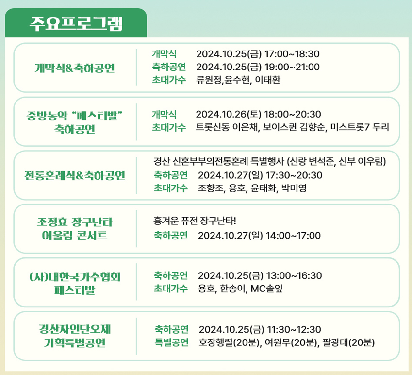 이상으로 10월 4째주 대구, 경북에서 열리는 축제 및 행사에 대해 소개해드렸습니다.