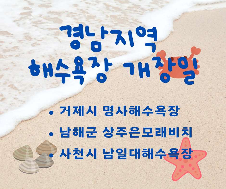 지난주 하지를 기점으로 이른 장마가 시작되었습니다. 장마가 시작되면서 우리들의 여름해수욕장도 여기저기 개장을 맞이하고 있습니다. 오늘은 경남 지역(부산 제외)의 해수욕장의 개장일 및 다양한 정보에 대한 글을 포스팅해 보도록 하겠습니다.