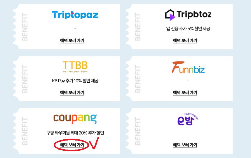 기본 숙박 할인 외에 참여한 업체별로 카드사 할인, 간편 결제 할인, 전용회원 중복할인 등 추가할인 혜택도 있으니 다양한 혜택확인도 해보시면 좋습니다.