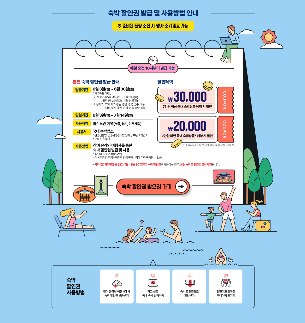 - 미성년자는 숙박 할인권 발급에 제한됩니다.(2004년 출생자까지는 참여 가능)