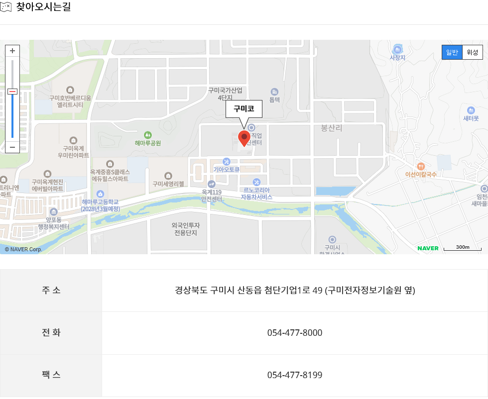 - 주소 : 경상북도 구미시 산동읍 첨단기업1로 49 (구미전자정보기술원 옆)