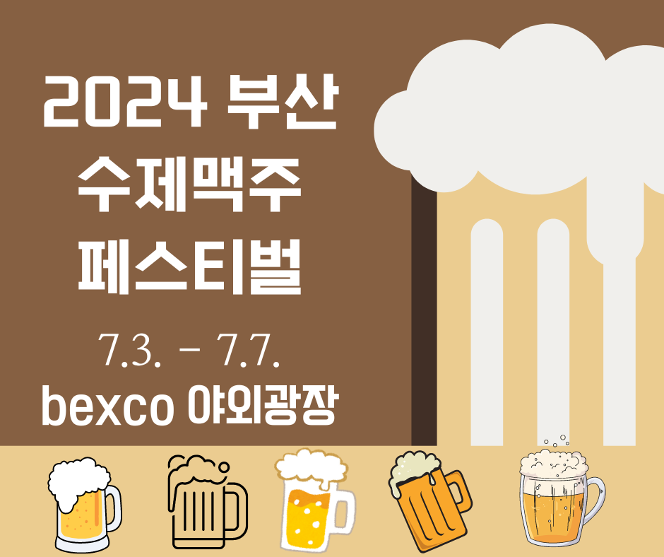 2018년 개최한 이래로 올해 7회째를 맞이하는 2024 부산수제맥주 페스티벌이 벡스코 야외광장에서 열리게 됩니다. 기간은 2024년 7월 3일(수) ~ 7월 7일(일) 5일간 부산 BEXCO 야외광장에서 진행됩니다.